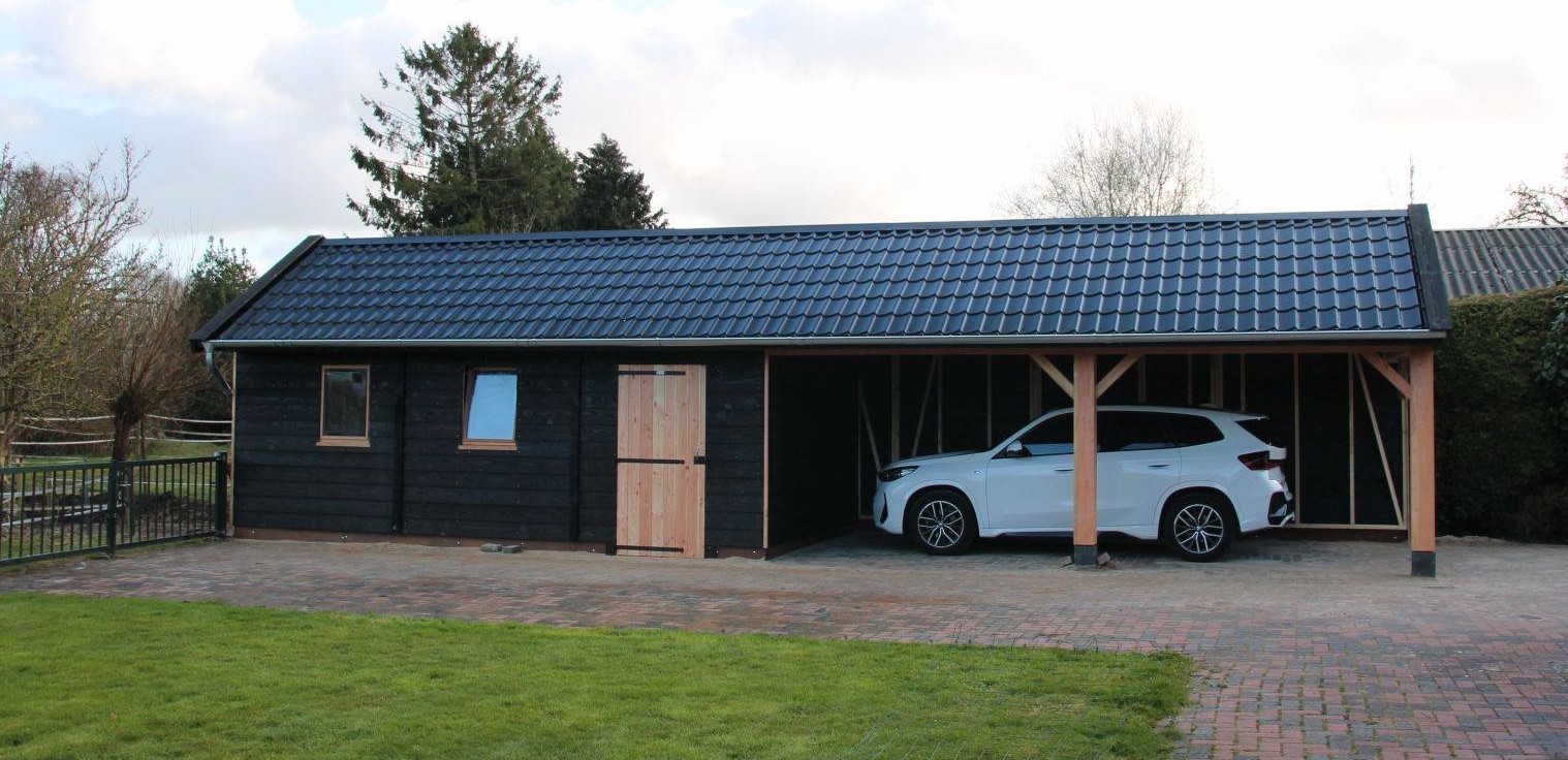 Berging met Carport (overkapping). Geplaatst in Peize.