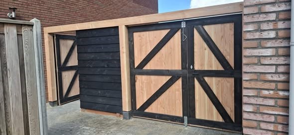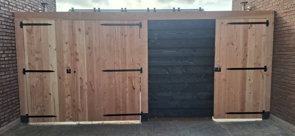 De deuren zijn voorzien van zwart beslag voor een stijlvolle uitstraling en duurzame afwerking.