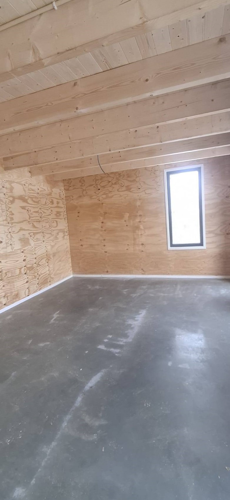 De wanden zijn opgebouwd uit 15cm dik regelwerk, volledig geiisoleerd en afgewerkt met 18mm platen.