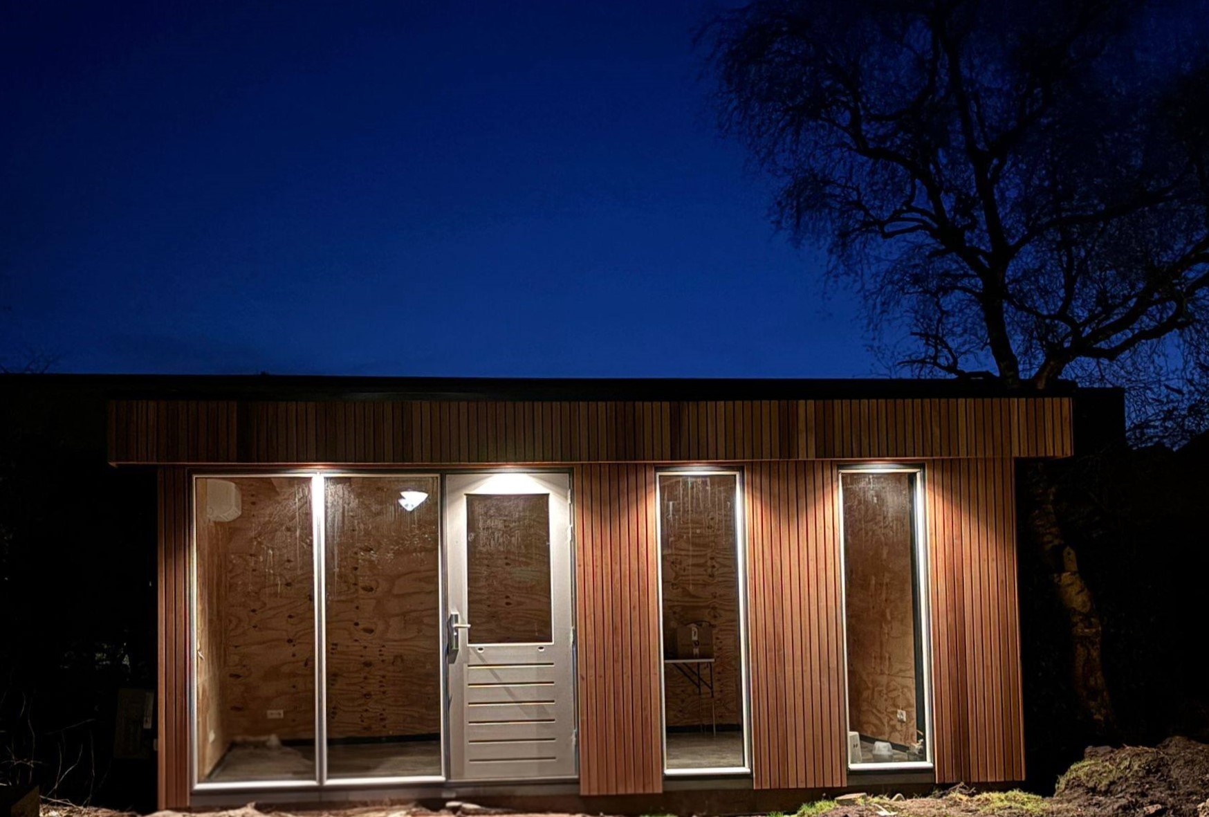 Als finishing touch zijn de buitenwanden bekleed met Thermisch verduurzaamd Ayous in blokprofiel, een prachtige duurzame combinatie !
