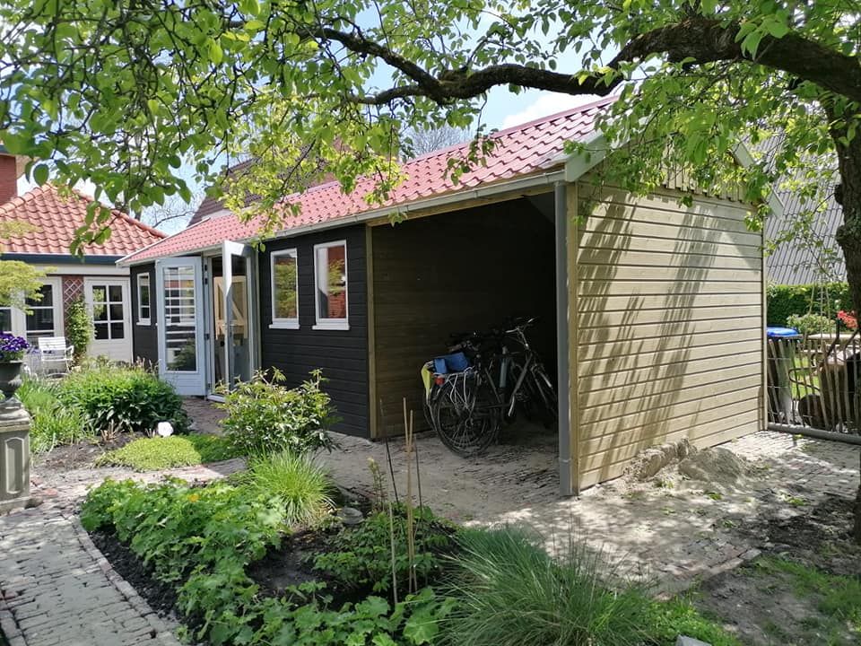 Tuinhuis / berging. Zwart geiimpregneerd vuren rabat. Geplaatst in Groningen.